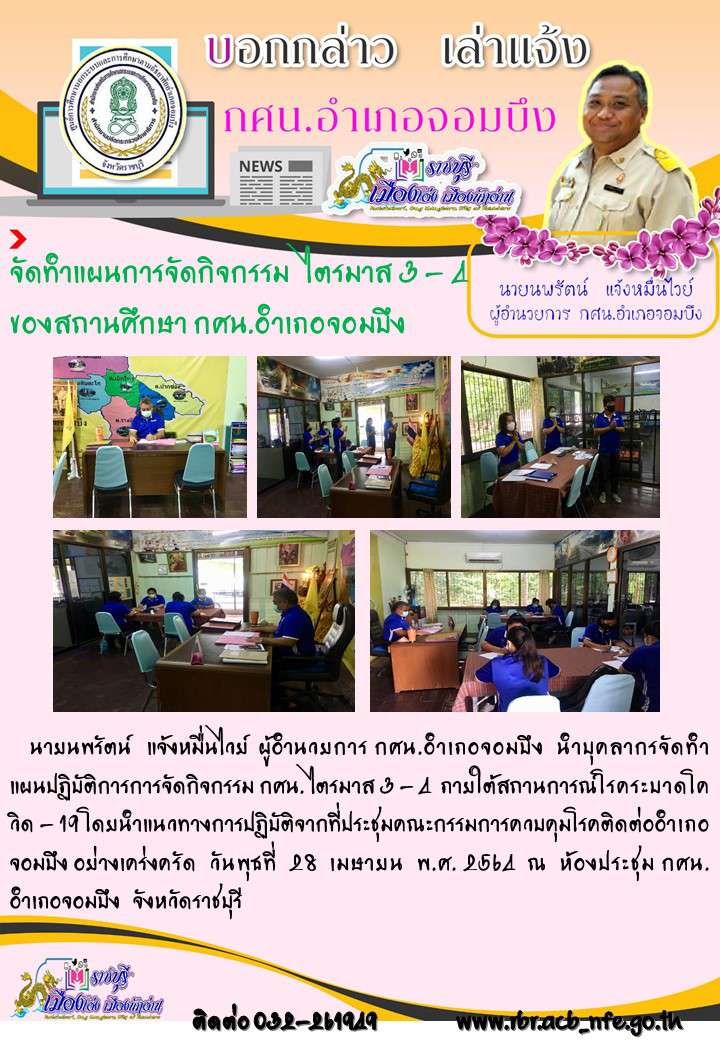 กศน.อำเภอจอมบึง:จัดทำแผนการจัดกิจกรรม ไตรมาส 3 - 4 ของสถานศึกษา กศน.อำเภอจอมบึง