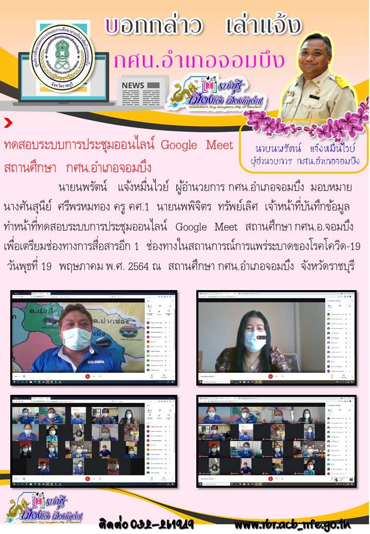 กศน.อำเภอจอมบึง:ทดสอบระบบการประชุมออนไลน์ Google Meet สถานศึกษา กศน.อำเภอจอมบึง