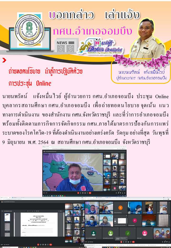 กศน.อำเภอจอมบึง:ร่วมประชุมระบบ Online ติดตามแผนพัฒนาการศึกษา ของสถานศึกษาในสังกัด สำนักงาน กศน.จังหวัดราชบุรี
