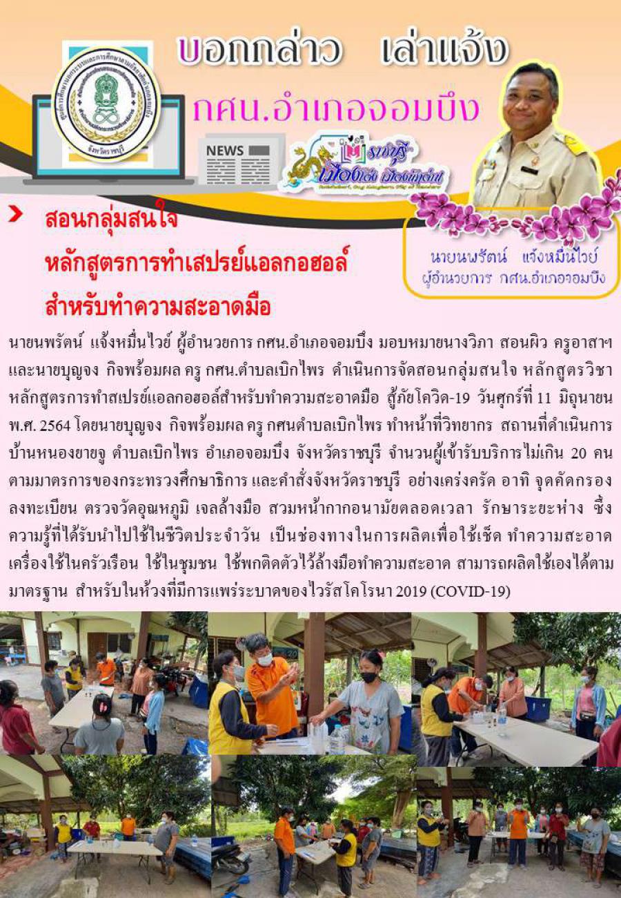 กศน.อำเภอจอมบึง:งานการศึกษาต่อเนื่อง กศน.ตำบลเบิกไพร