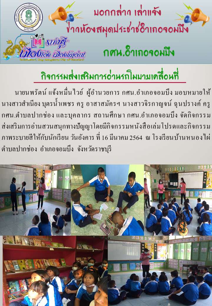 กศน.อำเภอจอมบึง:งานการศึกษาตามอัธยาศัย กิจกรรมส่งเสริมการอ่านรถโมบาย กศน.ตำบลปากช่อง