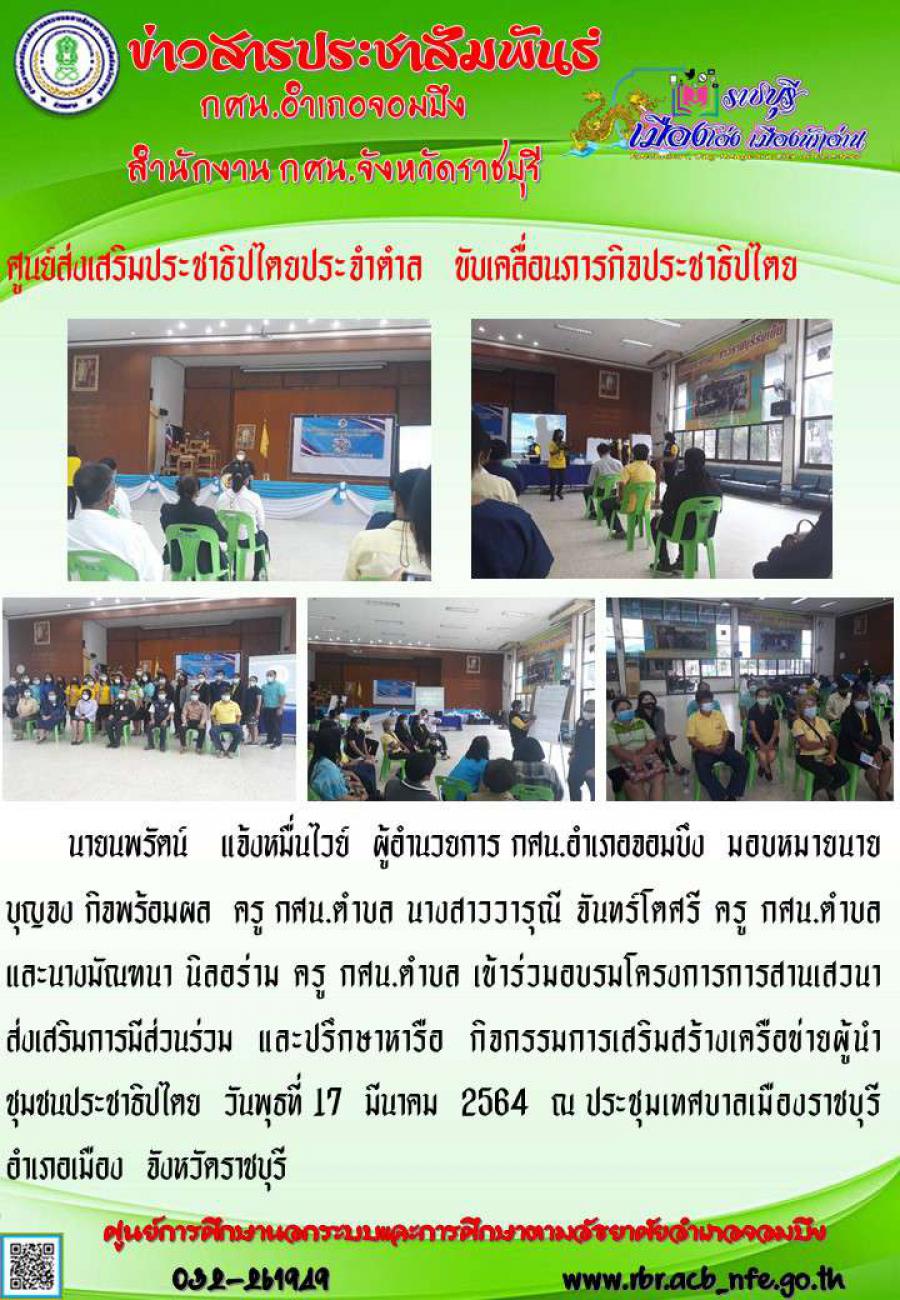 กศน.อำเภอจอมบึง:งานภาคีเครื่อข่าย ครู กศน.ตำบลร่วมอบรมโครงการการสานเสวนาส่งเสริมการมีส่วนร่วมฯ