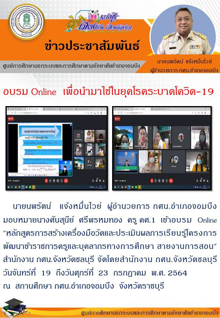 นายนพรัตน์ แจ้งหมื่นไวย์ ผู้อำนวยการ กศน.อำเภอจอมบึง มอบหมายนางศันสุนีย์ ศรีพรหมทอง ครู คศ.1 เข้าอบรม Online