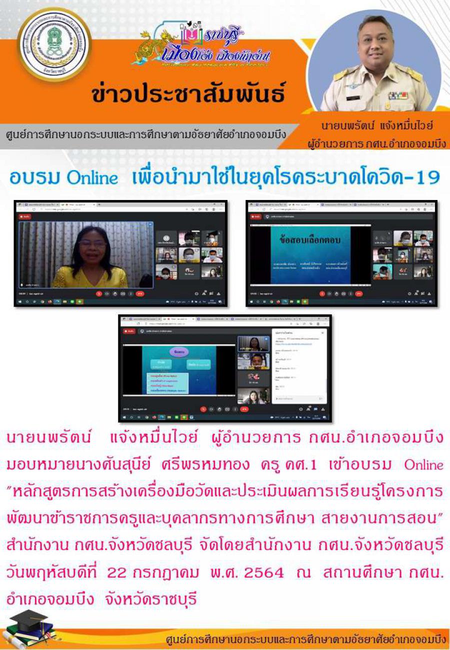 นายนพรัตน์ แจ้งหมื่นไวย์ ผู้อำนวยการ กศน.อำเภอจอมบึง มอบหมายนางศันสุนีย์ ศรีพรหมทอง ครู คศ.1 เข้าอบรม Online