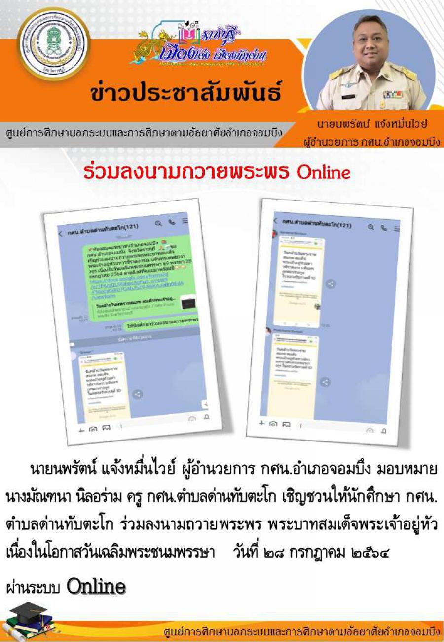 กศน.อำเภอจอมบึง ร่วมลงนามถวายพระพร Online
