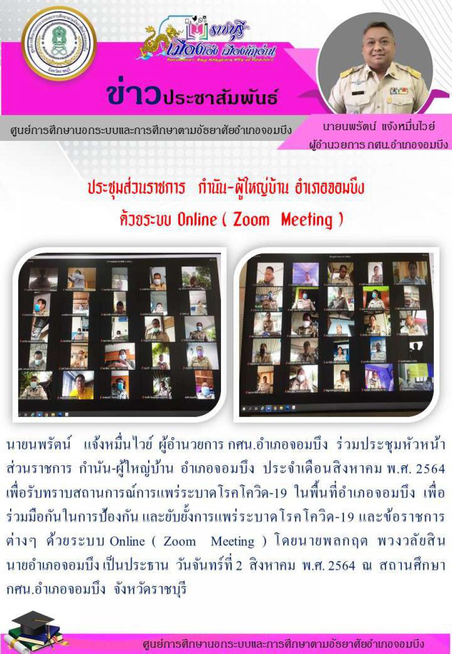 ประชุมส่วนราชการ กำนัน-ผู้ใหญ่บ้าน อำเภอจอมบึง ด้วยระบบ Online ( Zoom Meeting )