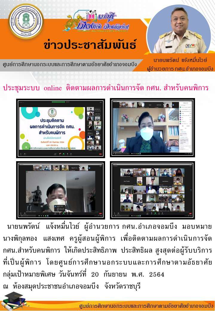 ประชุมระบบ online ติดตามผลการดำเนินการจัด กศน. สำหรับคนพิการ