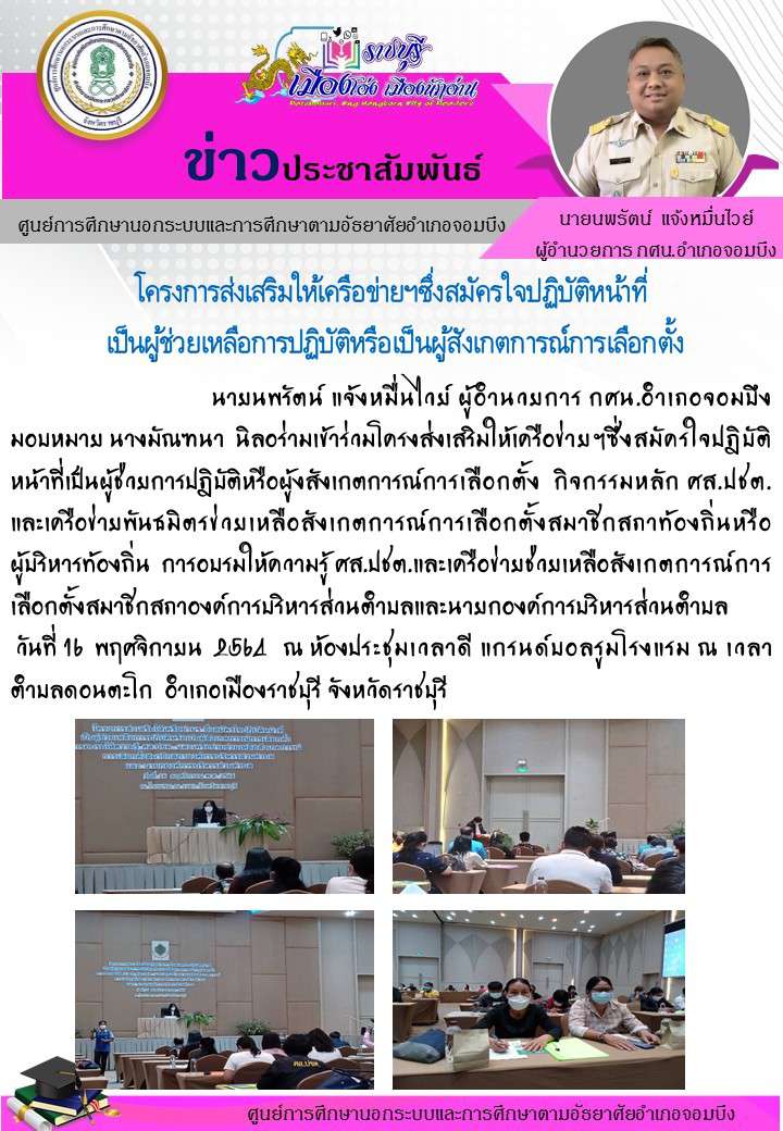โครงการส่งเสริมให้เครือข่ายฯซึ่งสมัครใจปฏิบัติหน้าที่ เป็นผู้ช่วยเหลือการปฏิบัติหรือเป็นผู้สังเกตการณ์การเลือกตั้ง