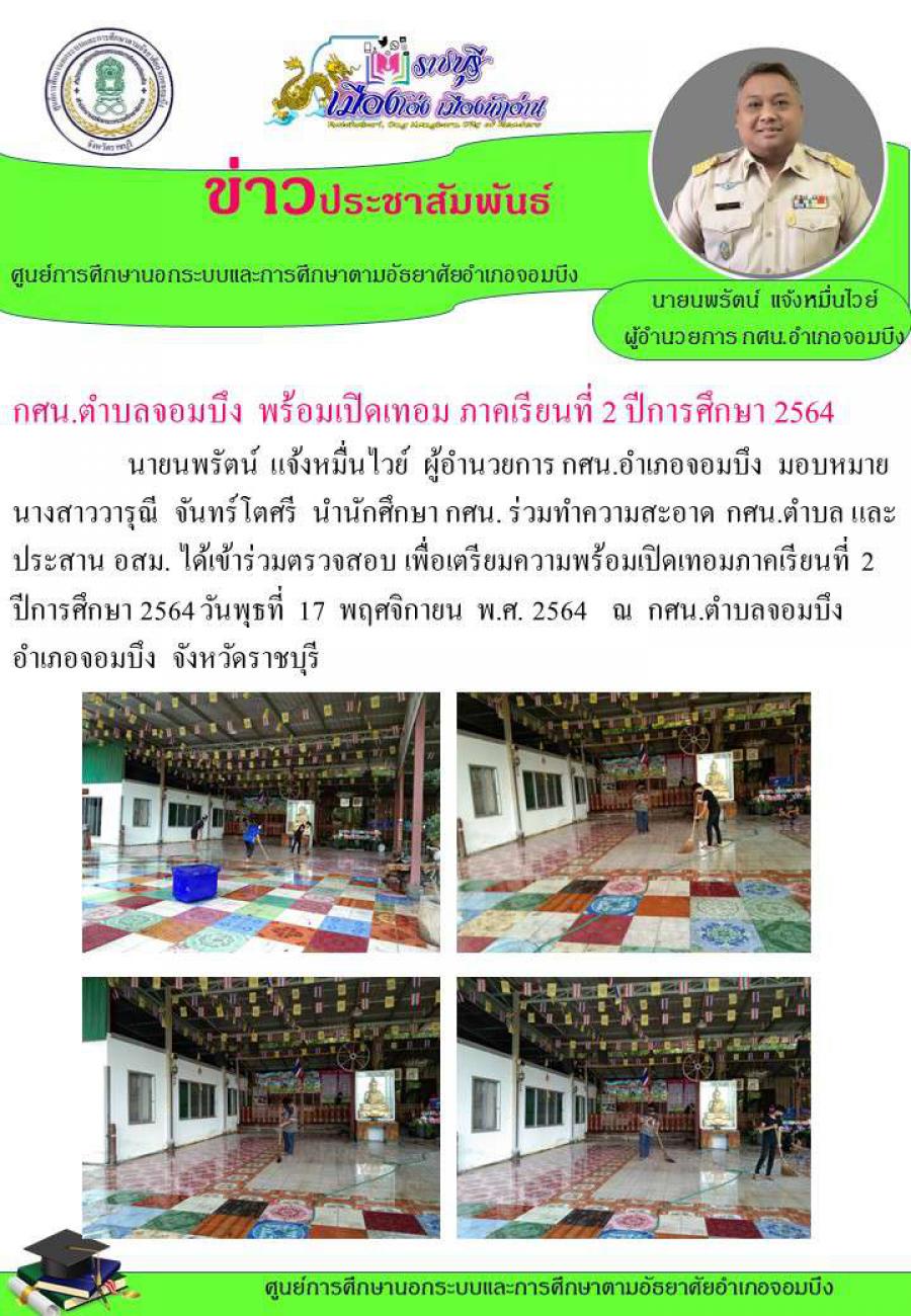 กศน.ตำบลจอมบึง พร้อมเปิดเทอม ภาคเรียนที่ 2 ปีการศึกษา 2564