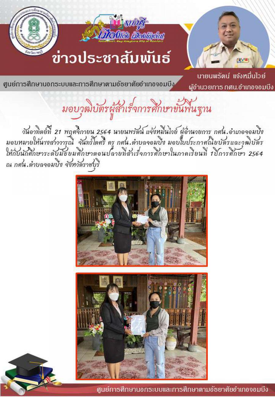 มอบวุฒิบัตรผู้สำเร็จการศึกษาขั้นพื้นฐาน
