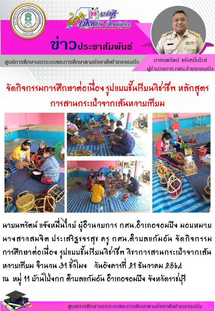 จัดกิจกรรมการศึกษาต่อเนื่อง รูปแบบชั้นเรียนวิชาชีพ หลักสูตรการสานกระเป๋าจากเส้นหวายเทียม