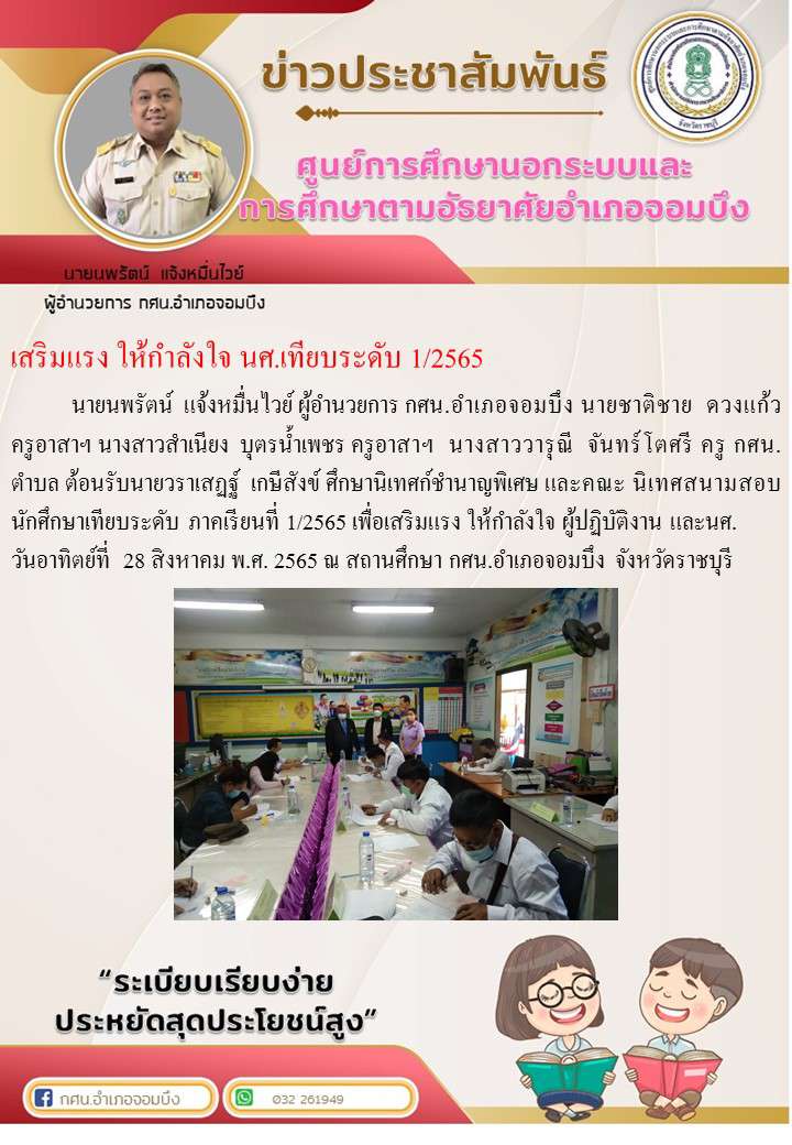เสริมแรง ให้กำลังใจ นศ.เทียบระดับ 1/2565