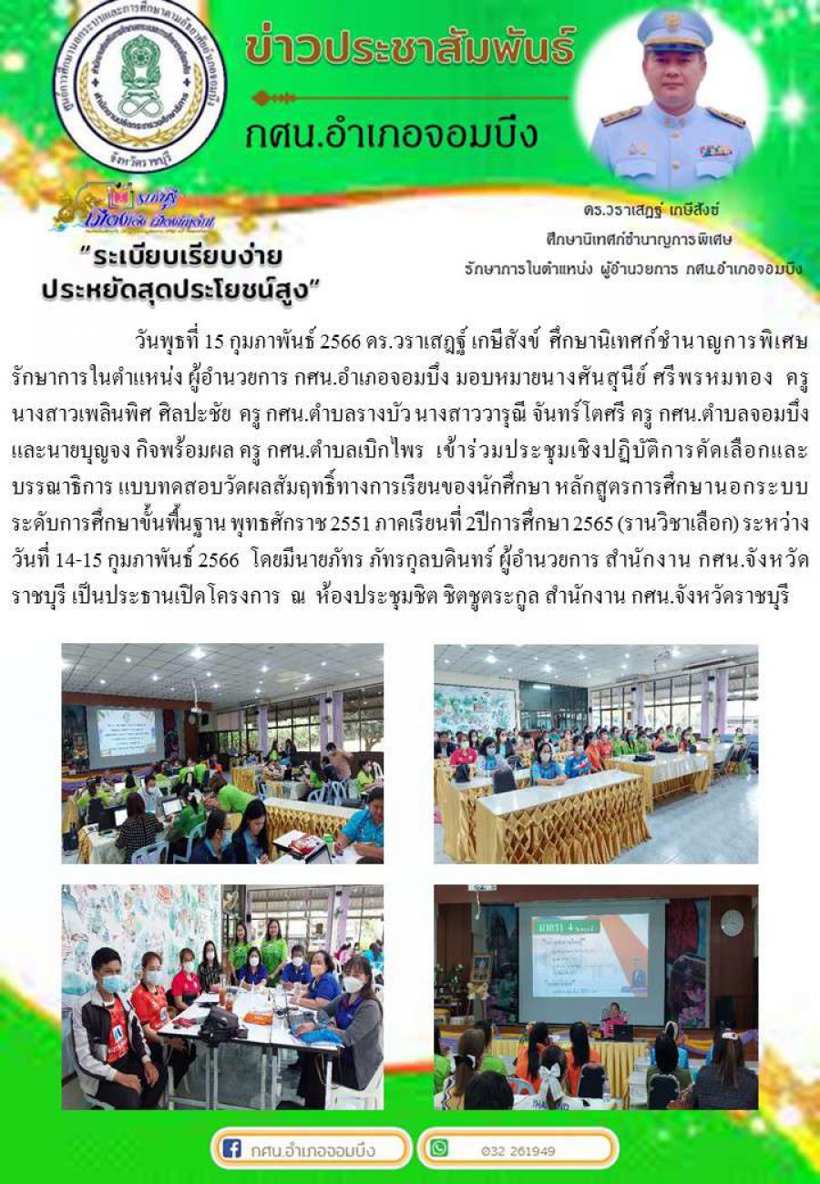 เข้าร่วมประชุมเชิงปฏิบัติการคัดเลือกและบรรณาธิการ แบบทดสอบวัดผลสัมฤทธิ์ทางการเรียนของนักศึกษา หลักสูตรการศึกษานอกระบบระดับการศึกษาขั้นพื้นฐาน พุทธศักราช 2551 ภาคเรียนที่ 2ปีการศึกษา 2565 (รานวิชาเลือก