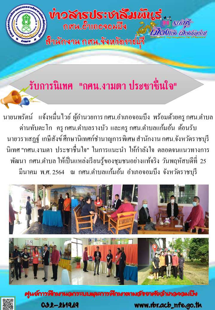 กศน.อำเภอจอมบึง:กศน.ตำบลรางบัว รับการนิเทศ กศน.งามตา ประชาชื่นใจ