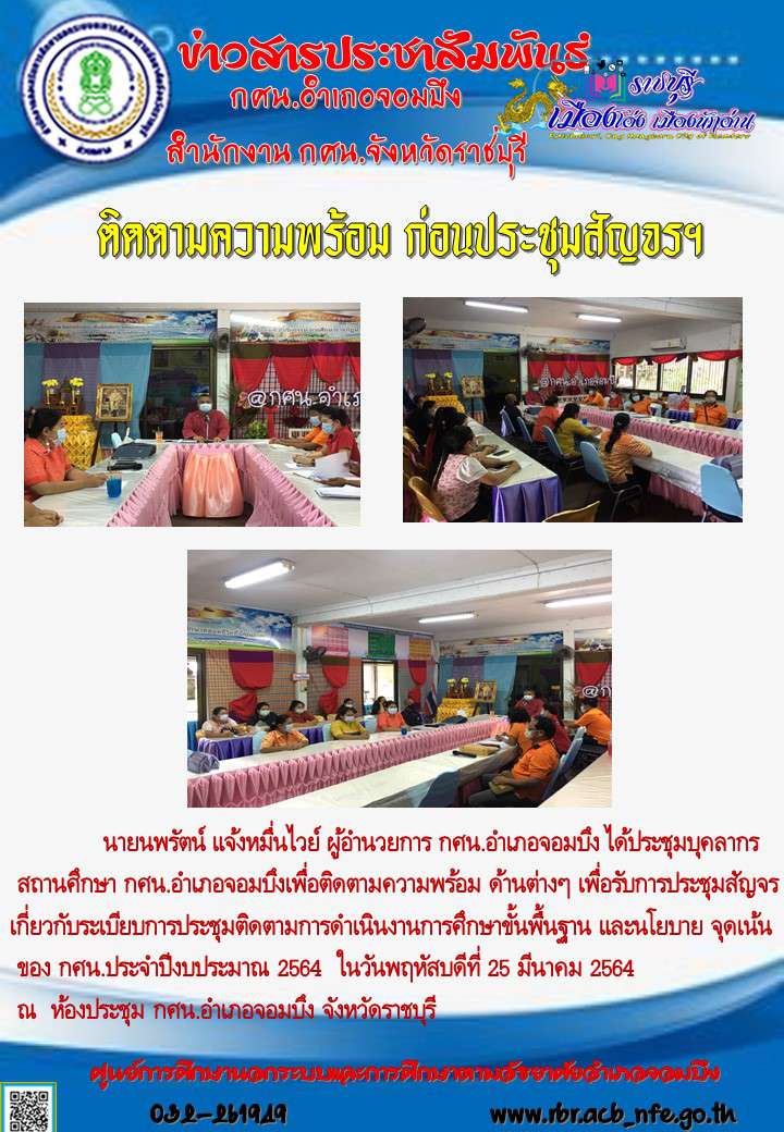 กศน.อำเภอจอมบึง :ประชุมบุคลากร สถานศึกษา กศน.อำเภอจอมบึงเพื่อติดตามความพร้อม ด้านต่างๆ เพื่อรับการประชุมสัญจร