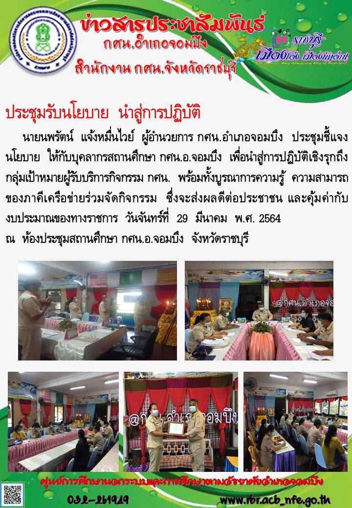 กศน.อำเภอจอมบึง: ประชุมประจำเดือนบุคลากร กศน.อำเภอจอมบึง