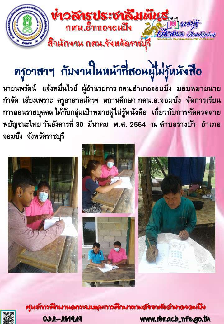 กศน.อำเภอจอมบึง:งานการศึกษาขั้นพื้นฐาน กิจกรรมพบกลุ่ม ผู้ไม่รู้หนังสือ