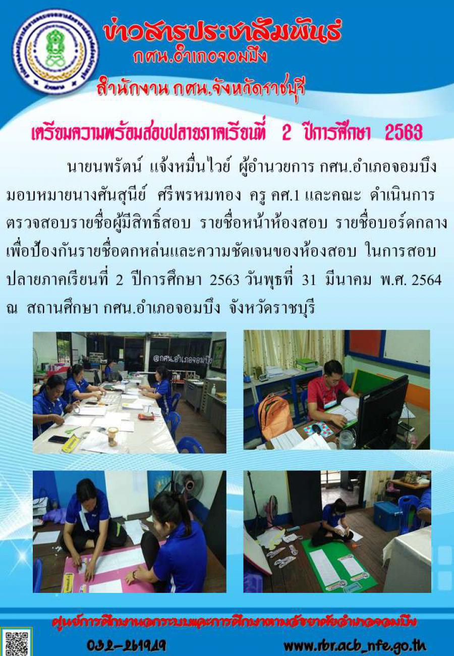 กศน.อำเภอจอมบึง:งานการศึกษาขั้นพื้นฐาน เตรียมความพร้อมสอบปลายภาคเรียนที่ 2 ปีการศึกษา 2563