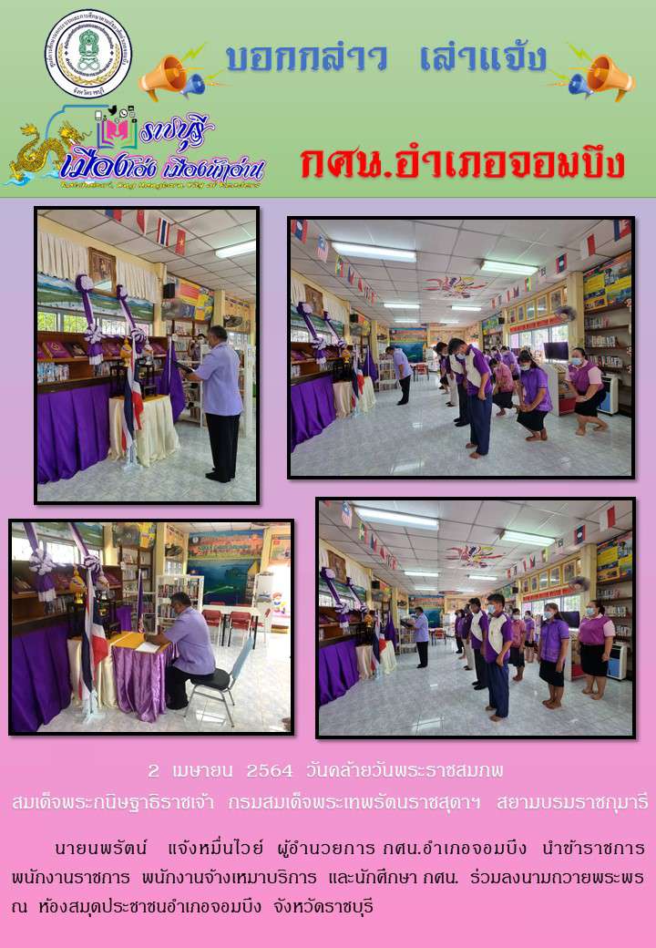 กศน.อำเภอจอมบึง:งานการศึกษาตามอัธยาศัย ห้องสมุดประชาชนอำเภอจอมบึง 2 เมษายน 2564 วันคล้ายวันพระราชสมภพ สมเด็จพระกนิษฐาธิราชเจ้า กรมสมเด็จพระเทพรัตนราชสุดาฯ สยามบรมราชกุมารี