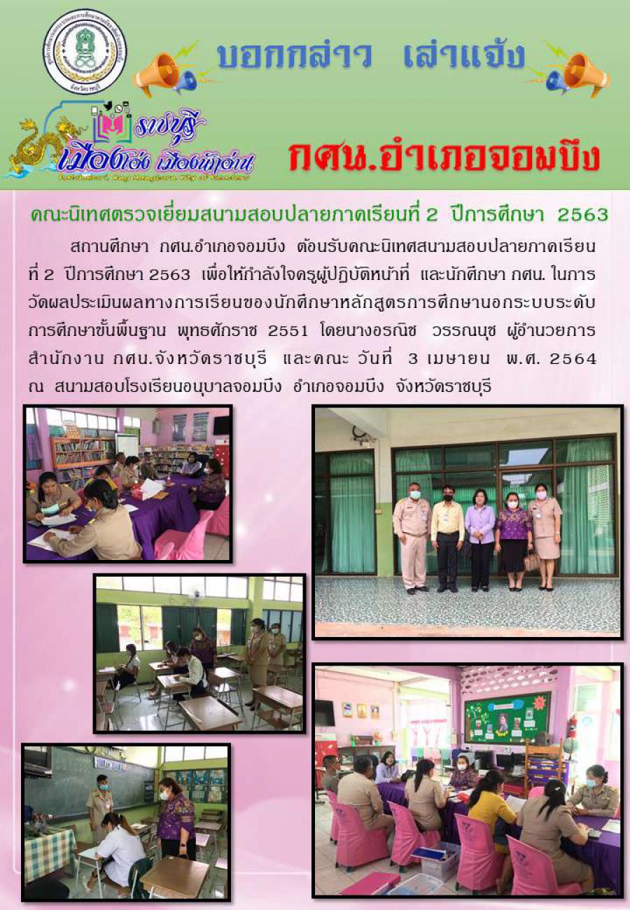 กศน.อำเภอจอมบึง:งานการศึกษาขั้นพื้นฐาน รับการนิเทศสนามสอบปลายภาคเรียนที่ 2 ปีการศึกษา 2563