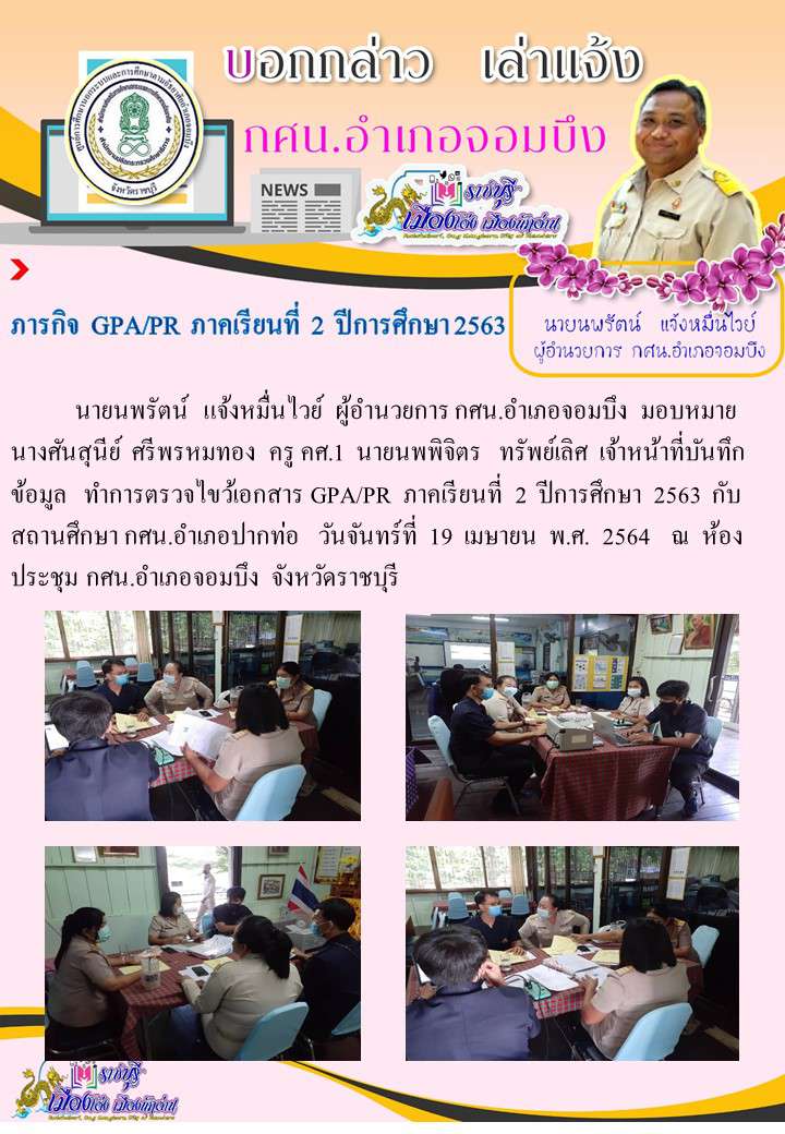 กศน.อำเภอจอมบึง:งานการศึกษาขั้นพื้นฐาน ทำการตรวจไขว้เอกสาร GPA/PR ภาคเรียนที่ 2 ปีการศึกษา 2563