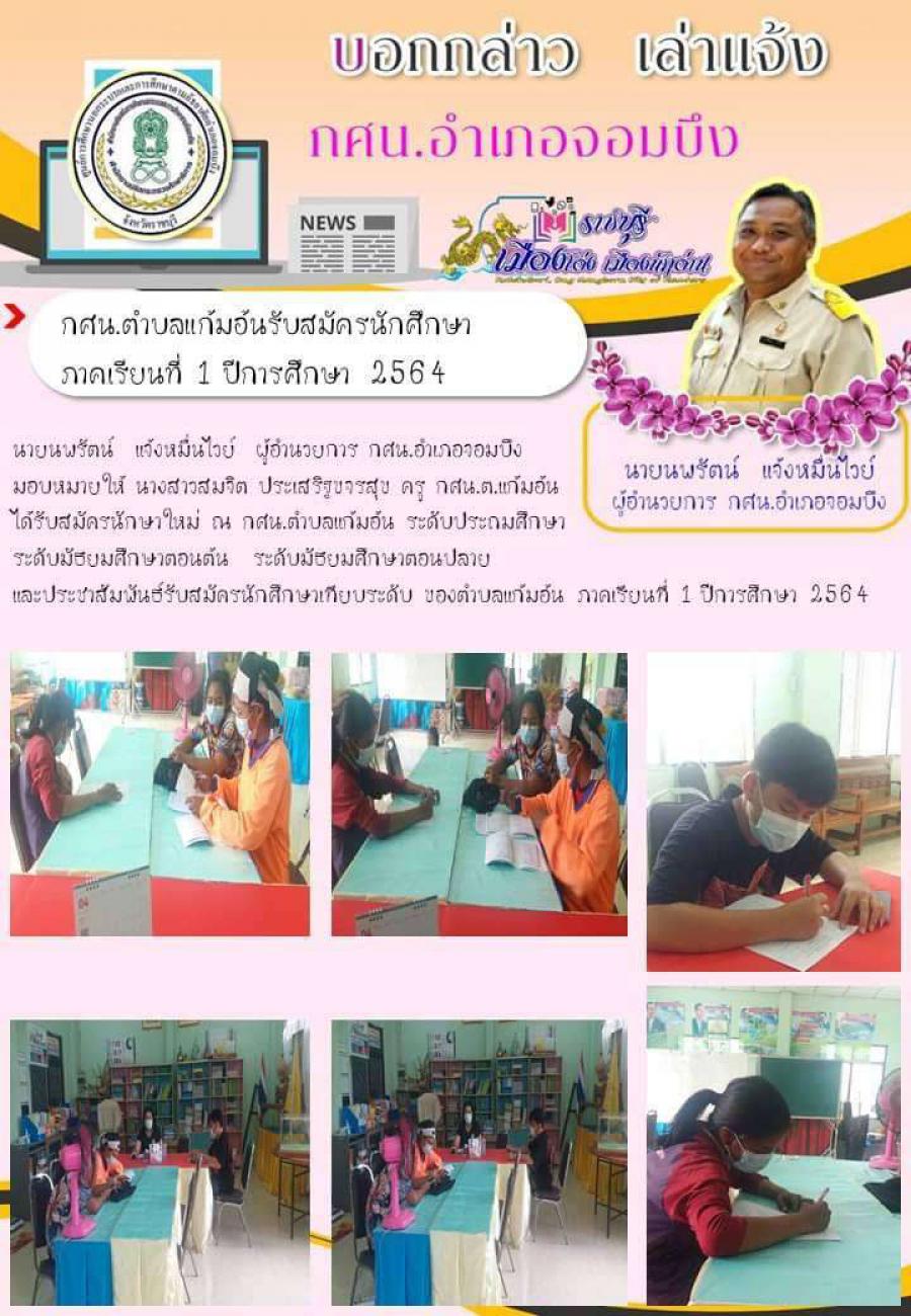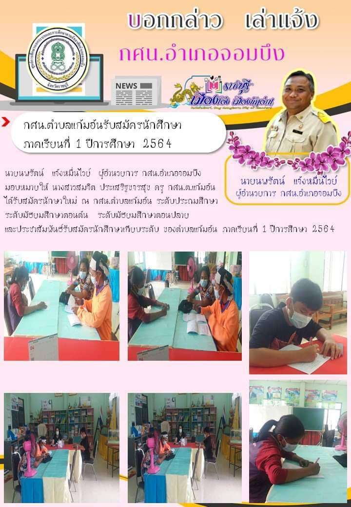 กศน.อำเภอจอมบึง:งานการศึกษาตามอัธยาศัย กศน.ตำบลเเก้มอ้น รับสมัครนักศึกษา ภาคเรียนที่ 1 ปีการศึกษา 2564